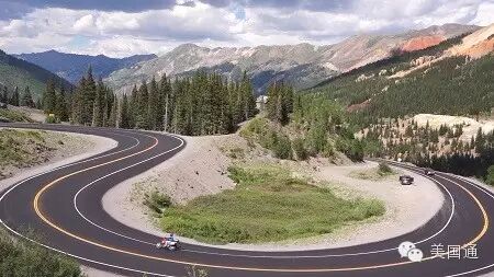 该高速公路经过“红山”,其最高点海拔为1.1018万英尺,这也是美国高速公路中海拔最高的。”