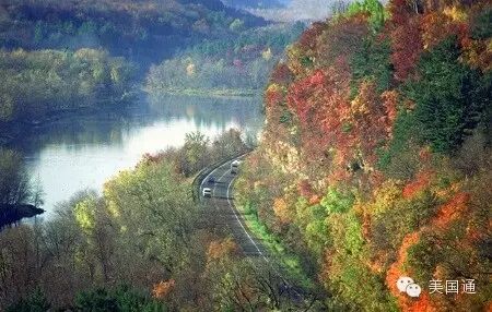 如果你选择在秋季出行,在路的前半段你就能看到树林中跳跃着的彩色斑斓。