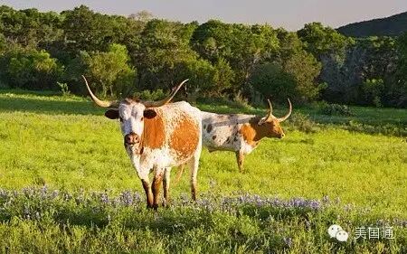 在这一片地区,你还会看到大片大片的农场,里面蓄养着成群的长角牛——它们是德克萨斯州的标志之一。每年4月,矢车菊(Bluebonnets)就会纷纷绽放,漫山遍野,美不胜收。