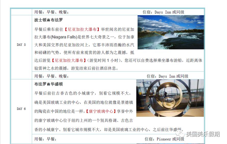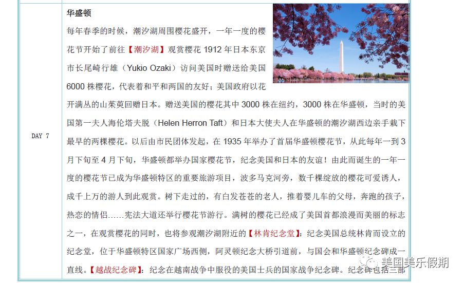 樱花之旅-美国东海岸+大瀑布10日日程